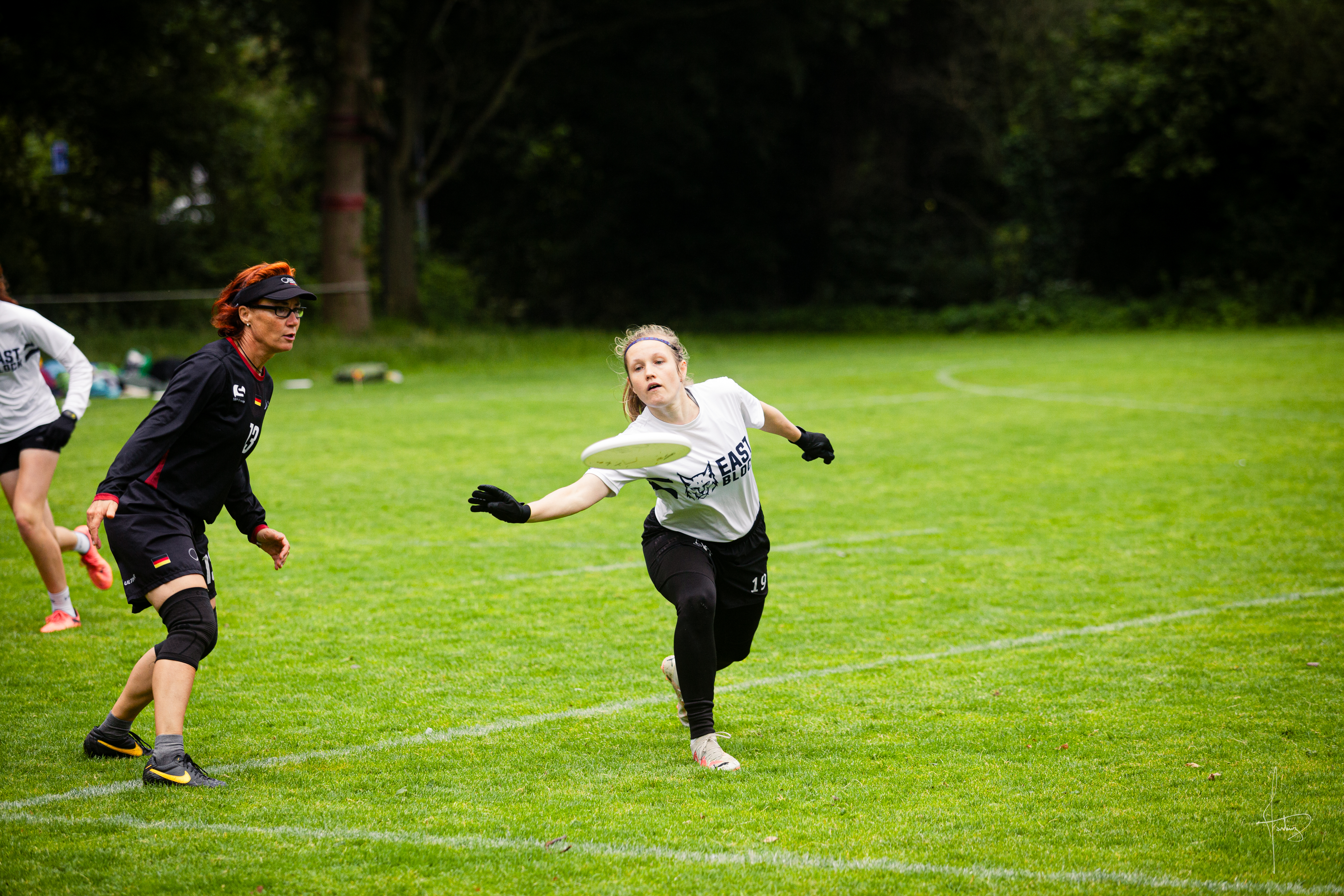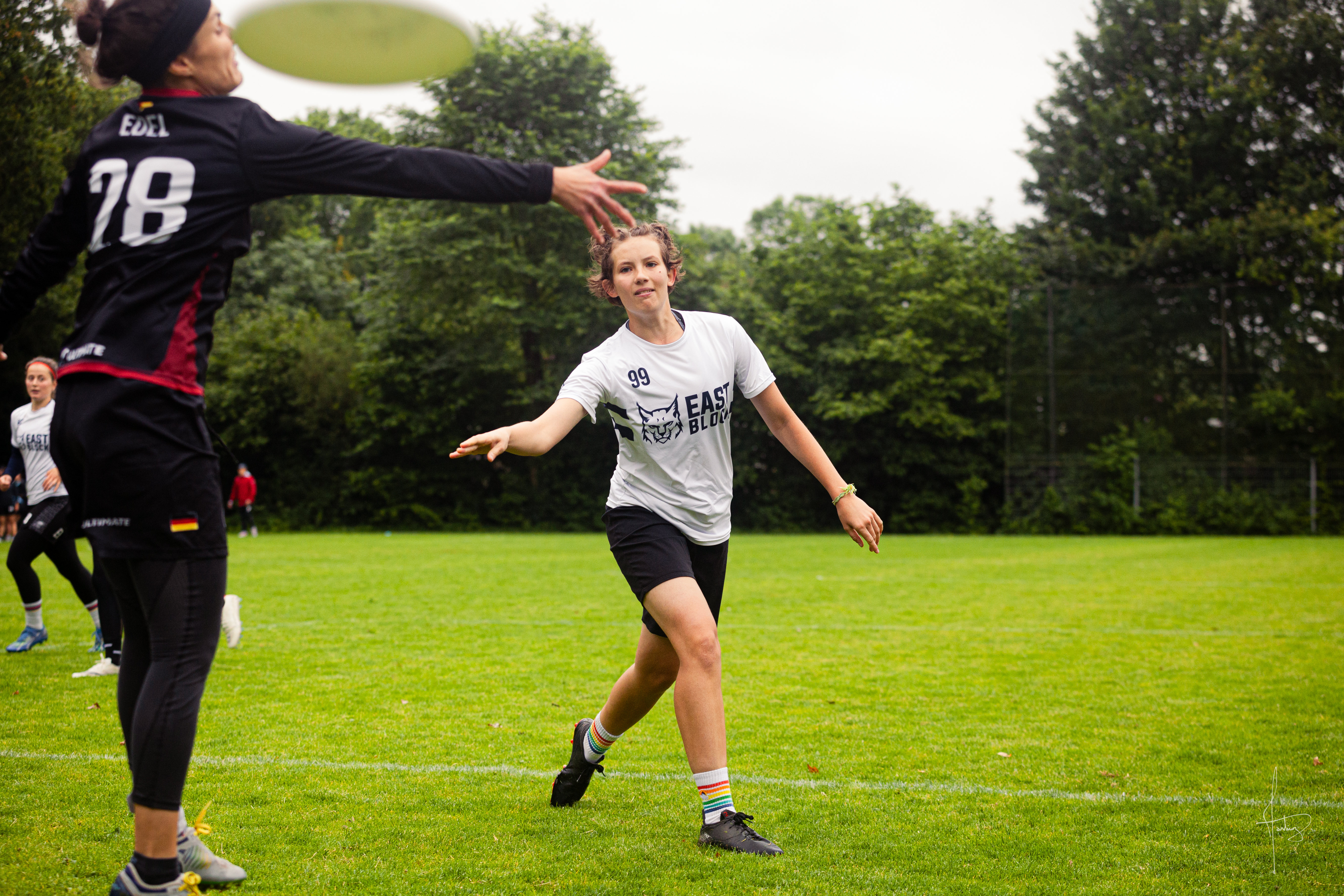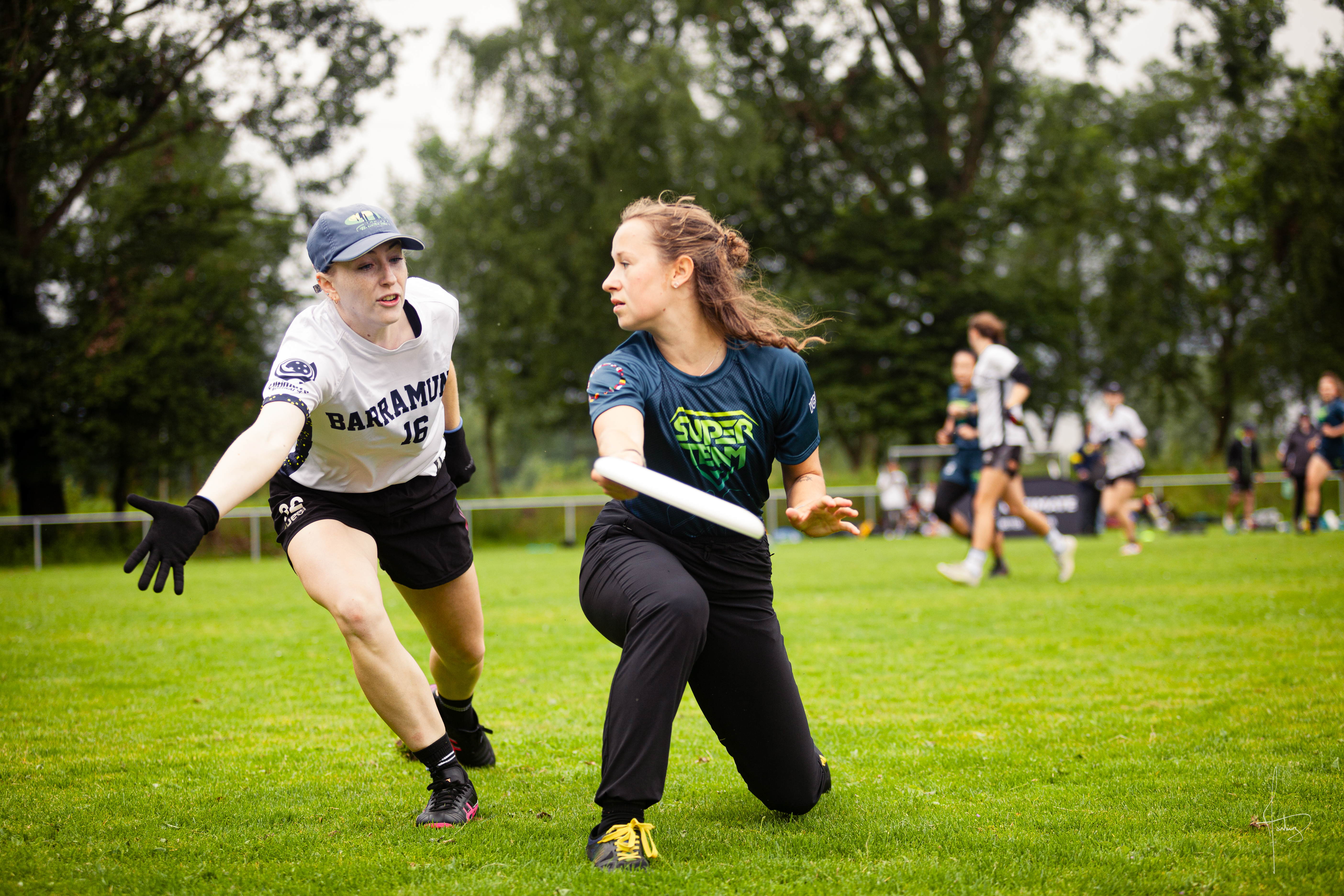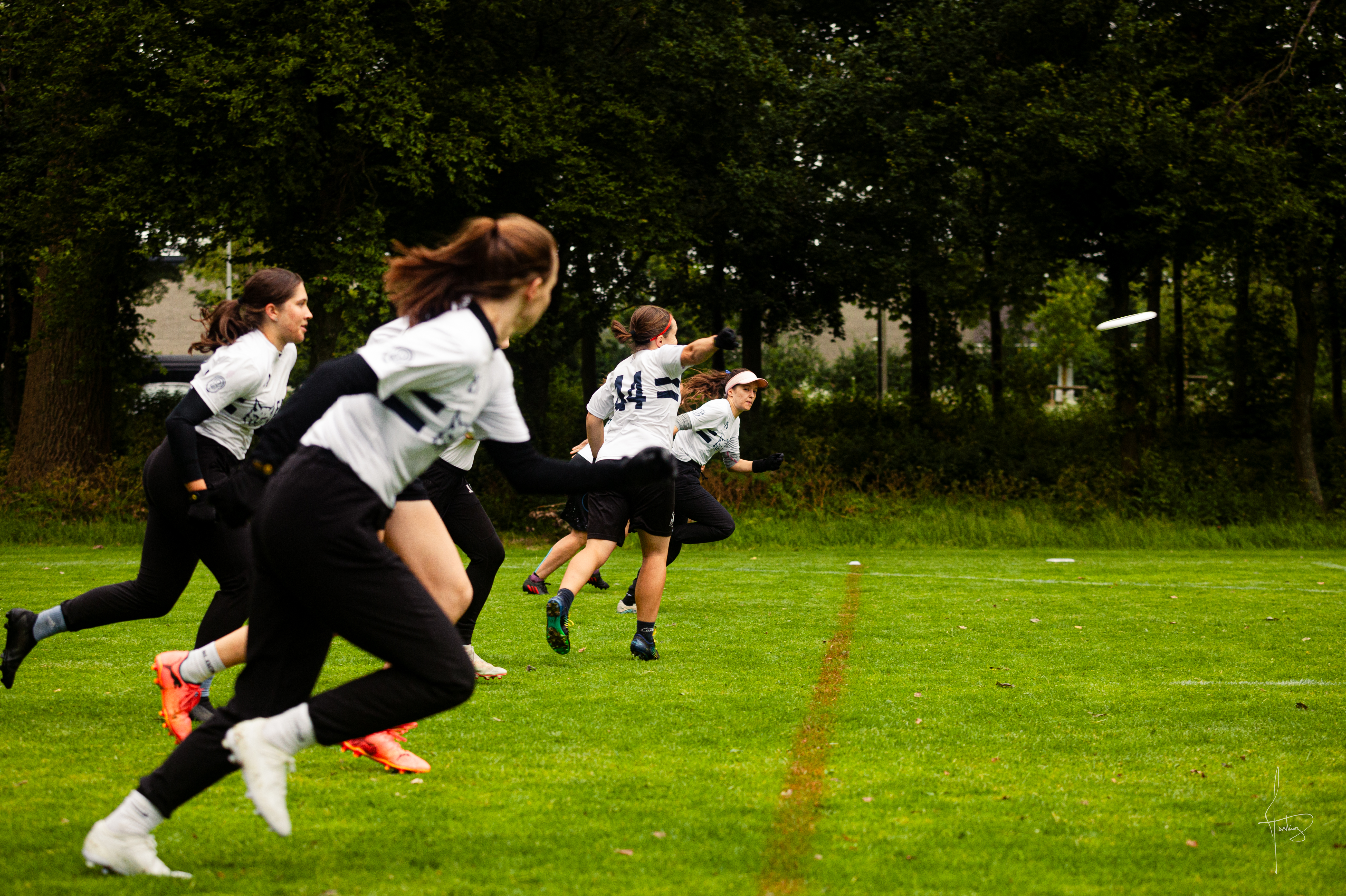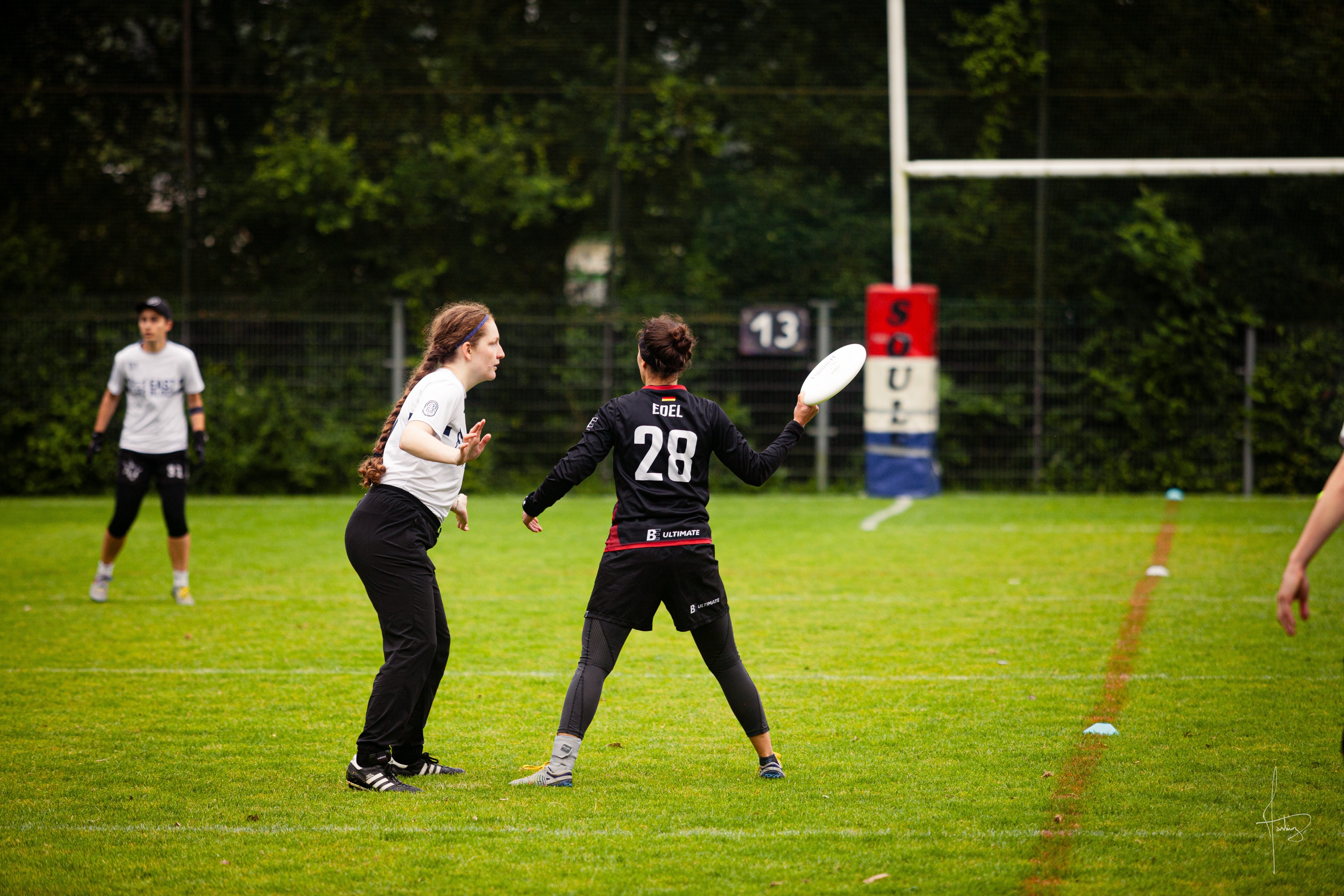 Saturday’s first game got delayed due to bad weather conditions and even though it stopped raining, the wind stayed strong. Our shortened game against FABulous saw us keeping offensive possesions through huck-and-D and ended at a 6:6 draw as no one was able to score a break. Swiss draw put us at the 7th spot in the ranking coming into the power-play which meant a quaterfinal game against the GB national team. The game felt like a repetition of the game against GRUT, GB went all in punishing our mistakes, playing on much faster legs than we could. Tough loss 15:4 sent us to the lower semifinals against BOX. In the end, we secured a win in the universe point and got ready for the party.